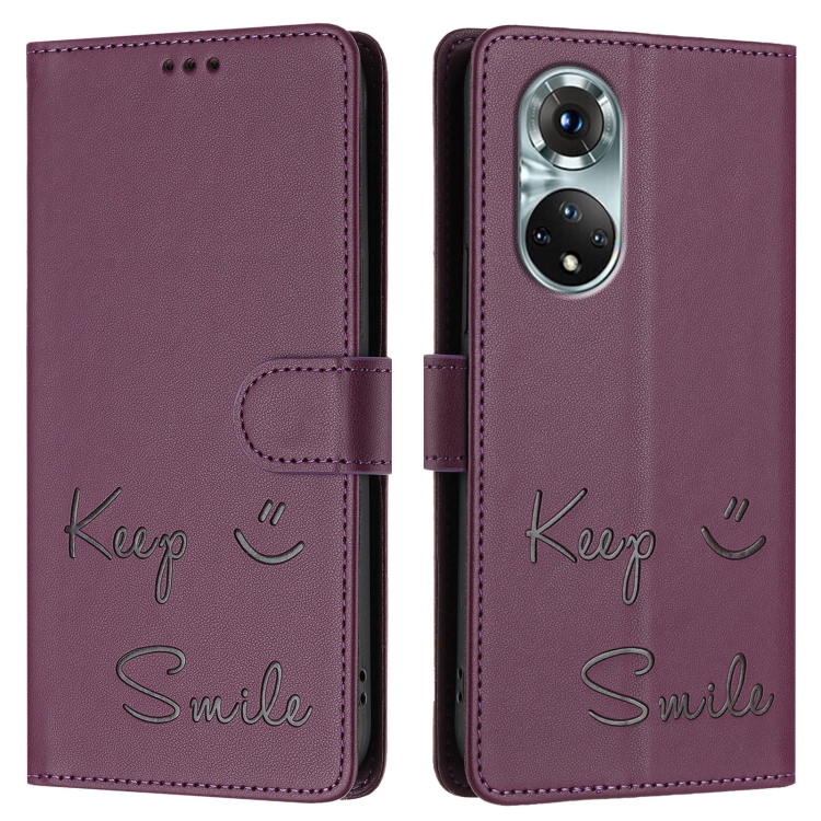 Funda de Cuero Rfid con Relieve Sonriente para Huawei Nova 9 Pro (Violeta)