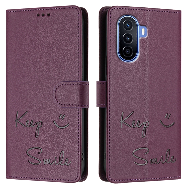 Funda de Cuero Rfid con Relieve Sonriente para Huawei Nova Y70 Plus (Violeta)