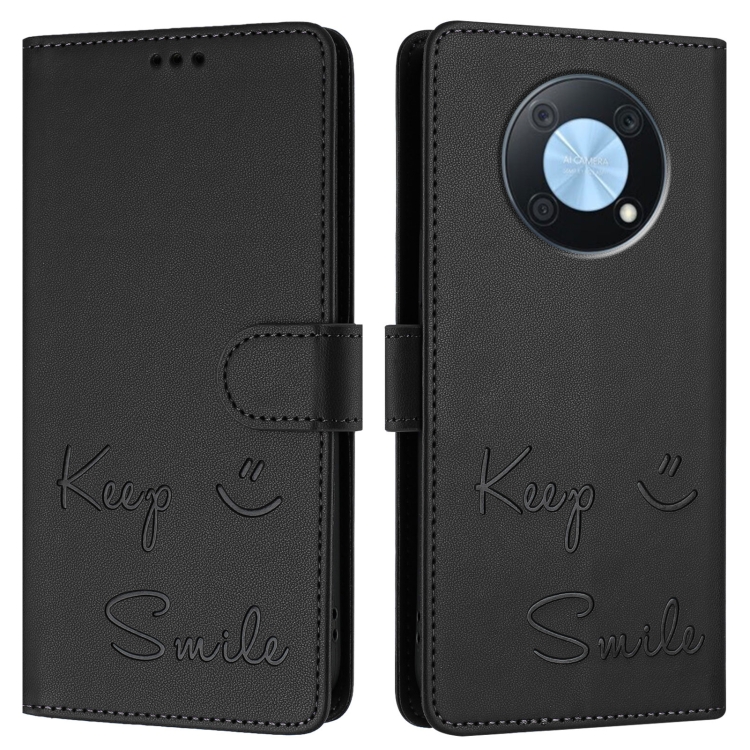 Funda de Cuero Rfid con Relieve Sonriente para Huawei Nova Y90 (Negra)