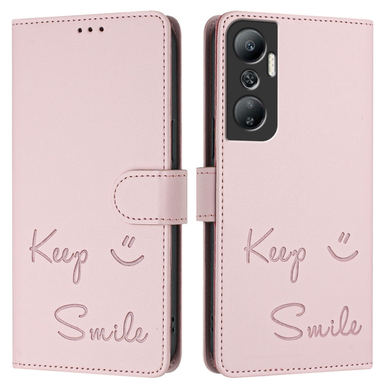Funda de Cuero RFID con Relieve Sonriente para Infinix Hot 20 4G X6826 (Rosa)