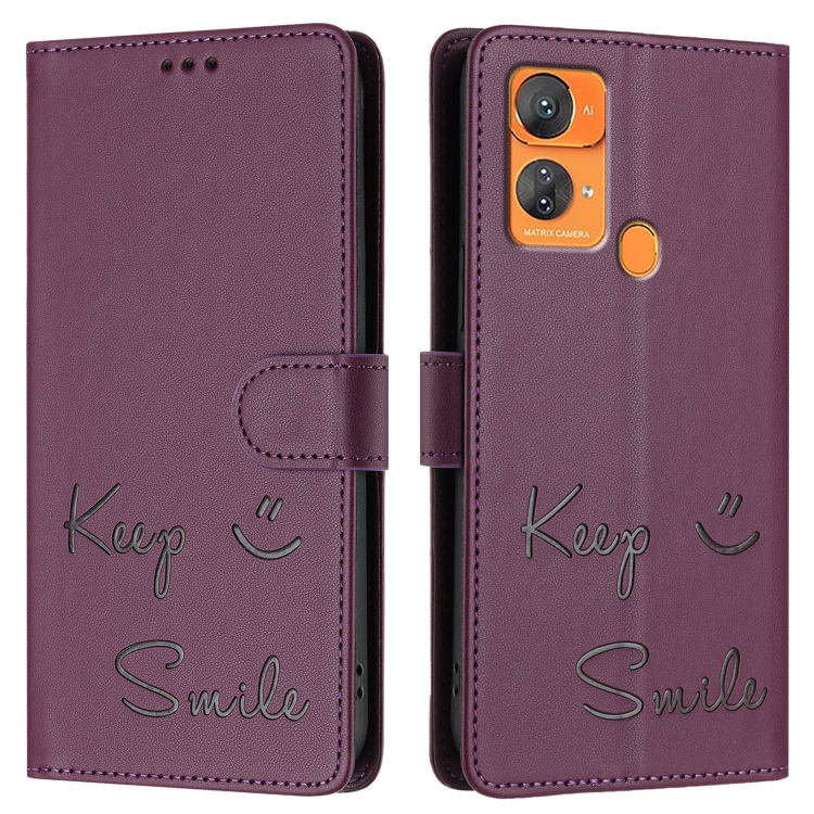 Funda Cuero Rfid con Relieve Sonriente para Oukitel C33 (Violeta)