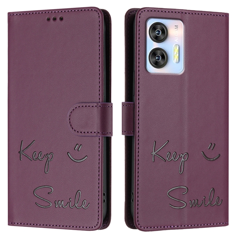 Funda de Cuero Rfid con Relieve Sonriente para Oukitel C36/C35 (Violeta)