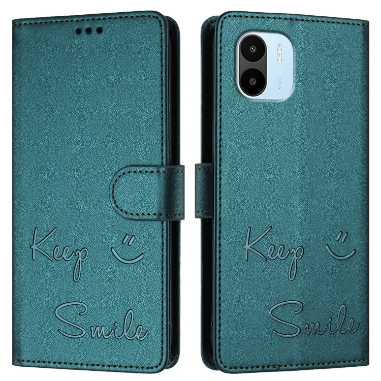 Funda de Cuero Rfid con Relieve Sonriente para Redmi A1/A2 (Verde Pavo Real)
