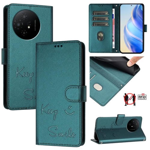 Funda de Cuero Rfid con Relieve Sonriente para TCL 50 Xl 5G (Verde Pavo Real)