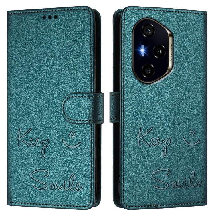 Funda de Cuero Rfid con Relieve Sonriente para Honor 300 Pro 5G y 300 Ultra 5G (Verde Pavo Real)