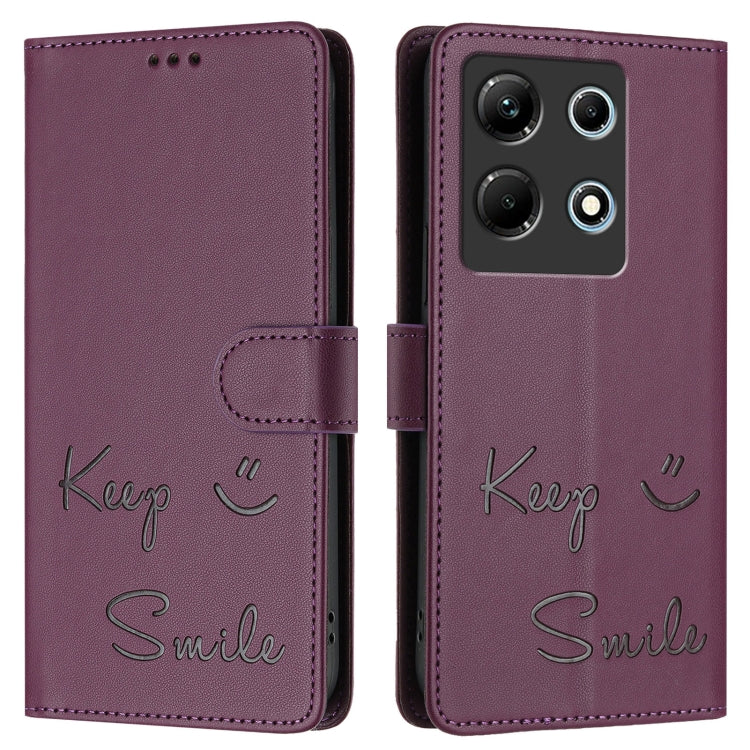 Funda de Cuero Rfid con Relieve Sonriente para Teléfono Infinix Note 30 4G X6833B (Violeta)