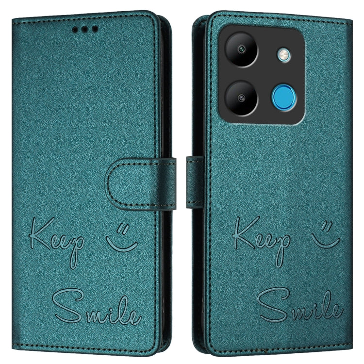 Funda de Cuero Rfid con Relieve Sonriente para Teléfono Infinix Smart 7 X6515 (Verde Pavo Real)