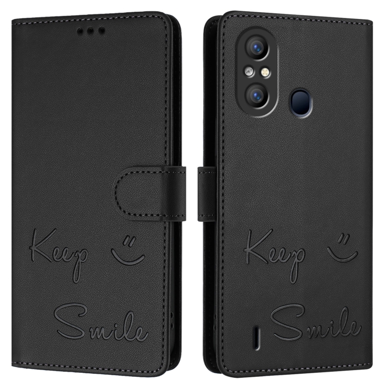 Funda de Cuero Rfid para Teléfono Itel A58/A49 con Relieve Sonriente (Negra)