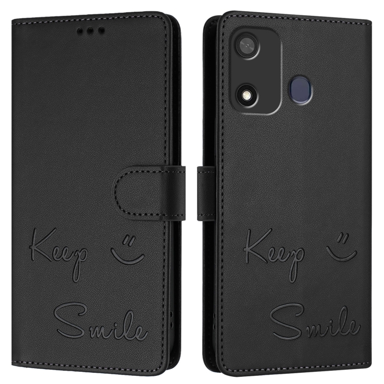 Funda de Cuero Rfid con Relieve Sonriente para Teléfono Itel P17/A27 (Negra)