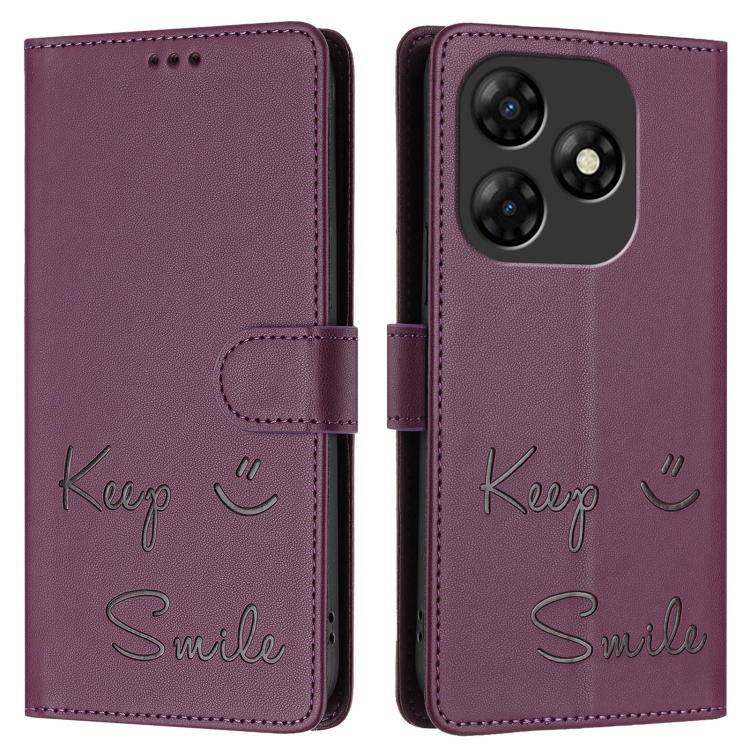 Funda de Cuero Rfid con Relieve Sonriente para Teléfono Itel P55 4G (Violeta)