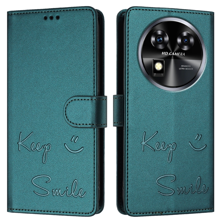 Funda de Cuero Rfid con Relieve Sonriente para Teléfono Oukitel C37 (Verde Pavo Real)