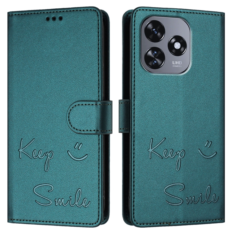 Funda de Cuero Rfid para Teléfono Oukitel C51 con Relieve Sonriente (Verde Pavo Real)