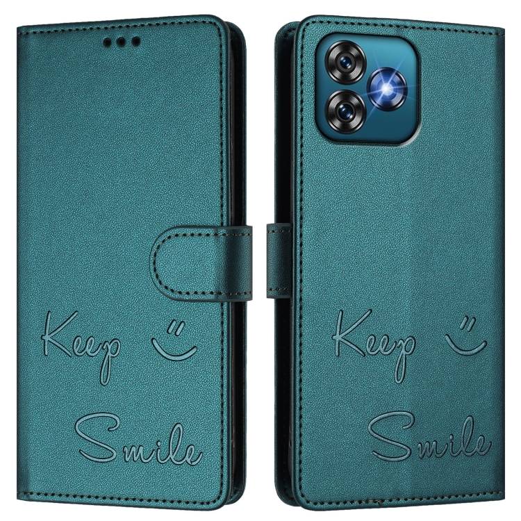 Funda de Cuero Rfid con Relieve Sonriente para Teléfono Oukitel C53 (Verde Pavo Real)
