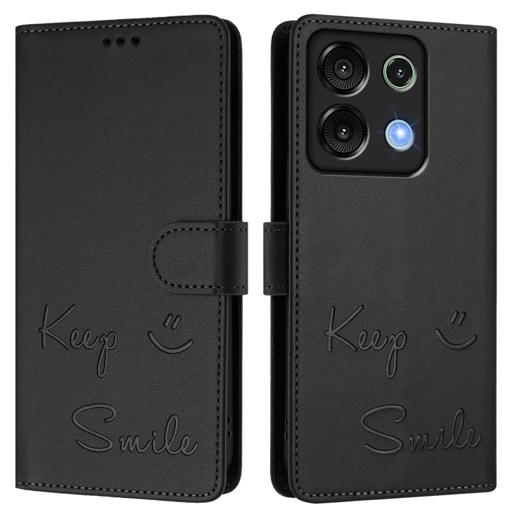 Funda de Cuero Rfid con Relieve Sonriente para Teléfono Umidigi G9 5G (Negra)