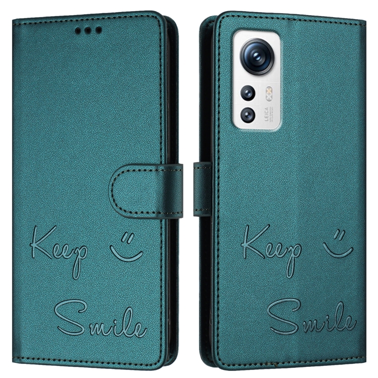 Funda de Cuero Rfid con Relieve Sonriente para Xiaomi 12/12X/12S (Verde Pavo Real)