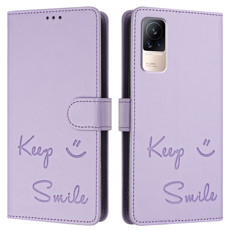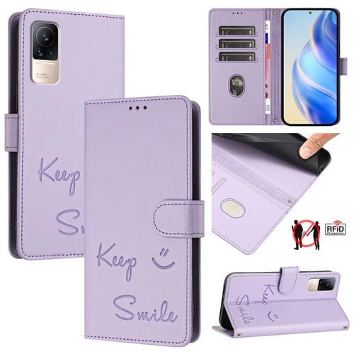 Funda de Cuero Rfid con Relieve Sonriente para Xiaomi Civi 1S (Morado Claro)