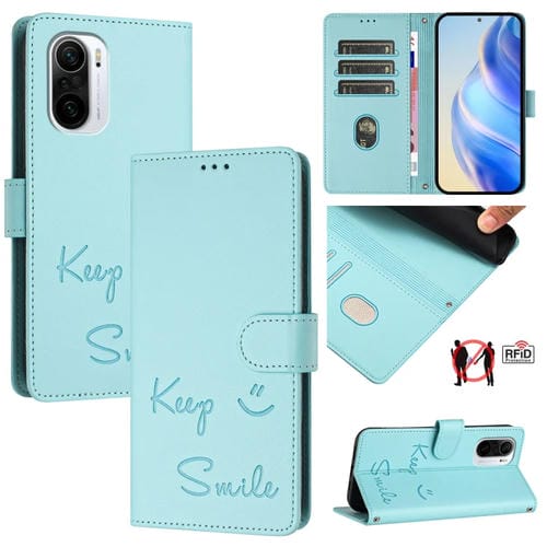 Funda de Cuero Rfid con Relieve Sonriente para Xiaomi Mi 11I/11X/11X Pro (Verde Menta)