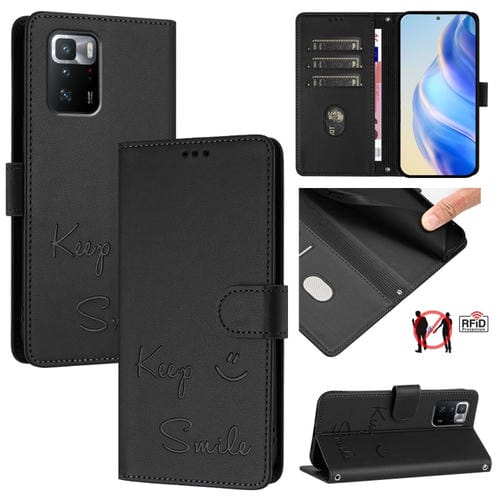 Funda de Cuero Rfid con Relieve Sonriente para Xiaomi Poco X3 Gt (Negra)