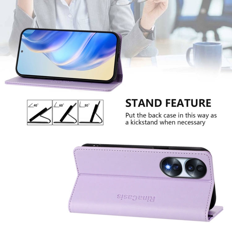 Funda de Cuero Rfid para Honor 70 Rc01 con Doble Pliegue y Succión Magnética (Morado Claro)