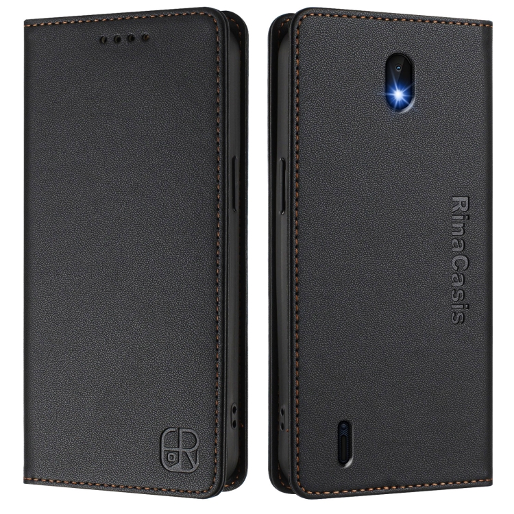 Funda de Cuero Rfid con Succión Magnética y Doble Pliegue para Nokia C01 Plus / C1 2Nd Edition Rc01 (Negra)