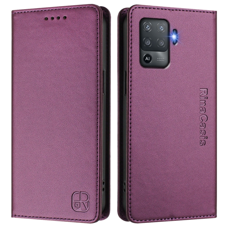 Funda de Cuero Rfid con Doble Pliegue y Succión Magnética para Oppo F19 Pro Rc01 (Violeta)