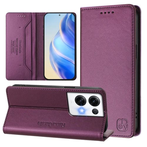 Funda de Cuero con Doble Pliegue y Succión Magnética Rfid para Oppo Reno8 Pro 5G Global Rc01 (Violeta)
