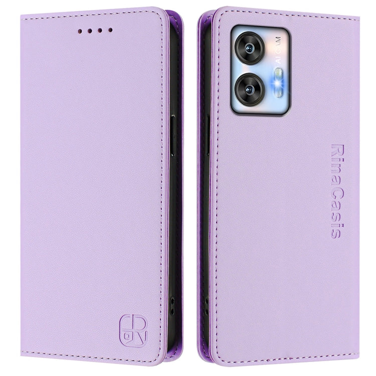 Funda de Cuero Rfid con Succión Magnética y Doble Pliegue para Oukitel C35 Rc01 (Morado Claro)