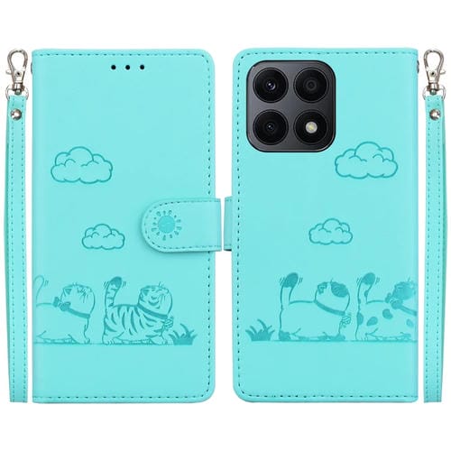 Funda de Cuero Rfid para Honor X8A con Diseño de Gatos (Verde)