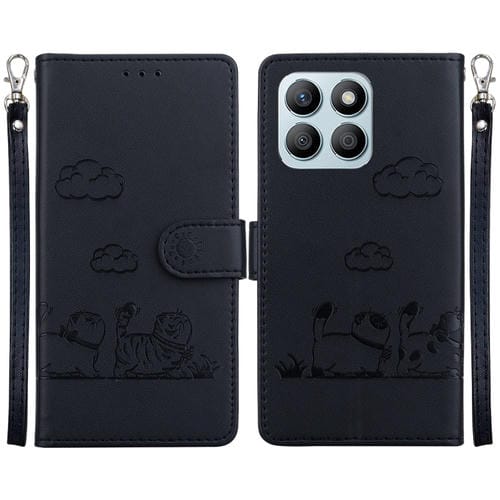 Funda de Cuero Rfid para Honor X8B con Diseño de Gatos (Negra)