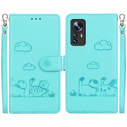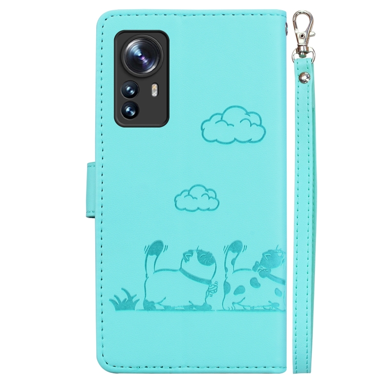 Funda de Cuero Rfid con Diseño de Gatos para Xiaomi 12/12X (Verde)