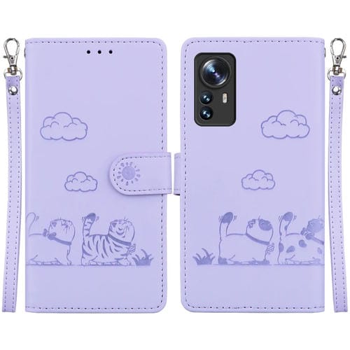 Funda de Cuero Rfid con Diseño de Gatos para Xiaomi 12/12X (Morada)