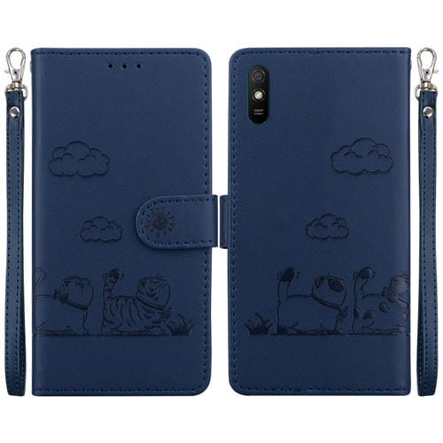 Funda de Cuero Rfid con Diseño de Gatos para Redmi 9A/9I Sport (Azul)