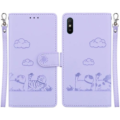 Funda de Cuero Rfid con Diseño de Gatos para Redmi 9A/9I Sport (Morado)