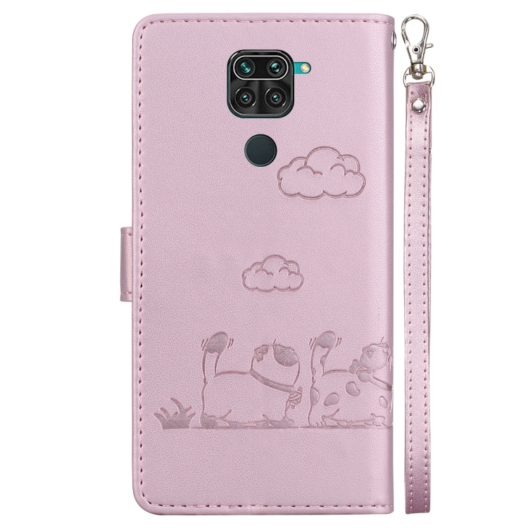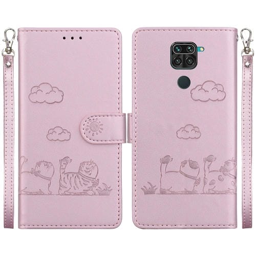 Funda de Cuero Rfid con Diseño de Gatos para Redmi Note 9/10X 4G (Oro Rosa)