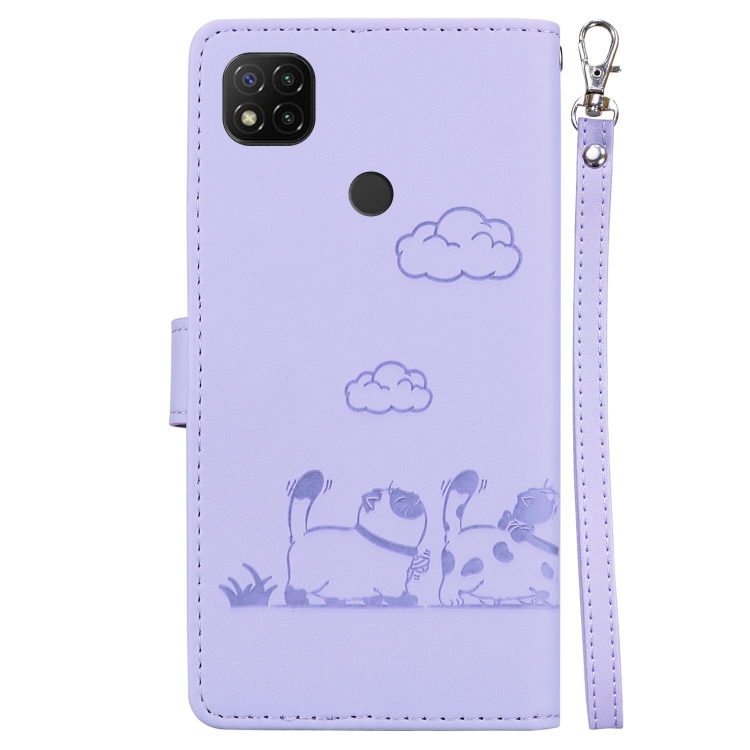 Funda de Cuero Rfid con Diseño de Gatos para Xiaomi Poco C31 (Morado)