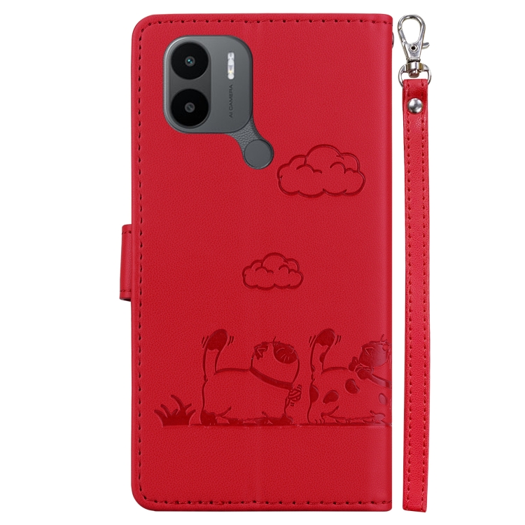 Funda de Cuero Rfid con Diseño de Gatos para Xiaomi Poco C50 (Roja)