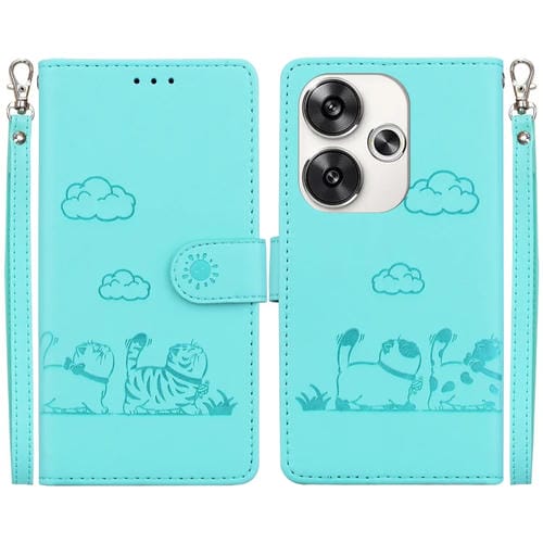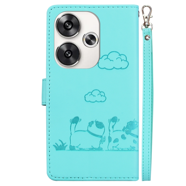 Funda de Cuero Rfid con Diseño de Gatos para Xiaomi Poco F6 (Verde)