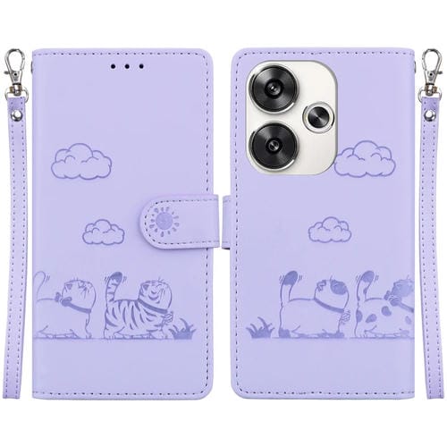 Funda de Cuero Rfid con Diseño de Gatos para Xiaomi Poco F6 (Morado)