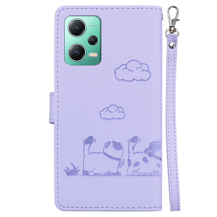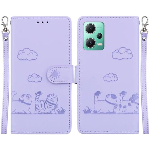 Funda de Cuero Rfid con Diseño de Gatos para Xiaomi Poco X5 (Morado)