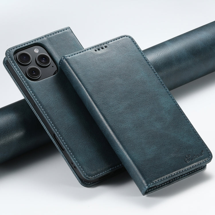 Funda Tipo Billetera Suteni J02 Cuero con Cera de Aceite para iPhone 16 Pro Max (Azul)