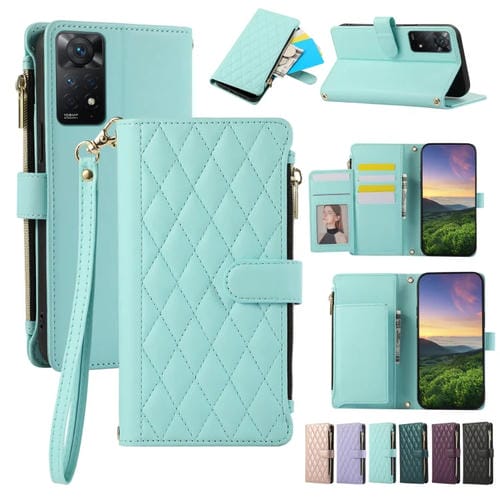 Funda de Cuero Tipo Billetera con Cremallera Rombal para Redmi Note 11 Pro 4G (Cian)