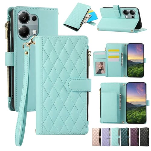 Funda de Cuero Tipo Billetera con Cremallera Rombal para Redmi Note 13 Pro 4G (Cian)