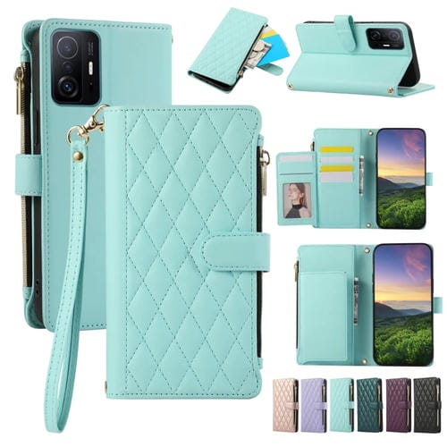 Funda de Cuero Tipo Billetera con Cremallera Rombal para Xiaomi Mi 11T (Cian)