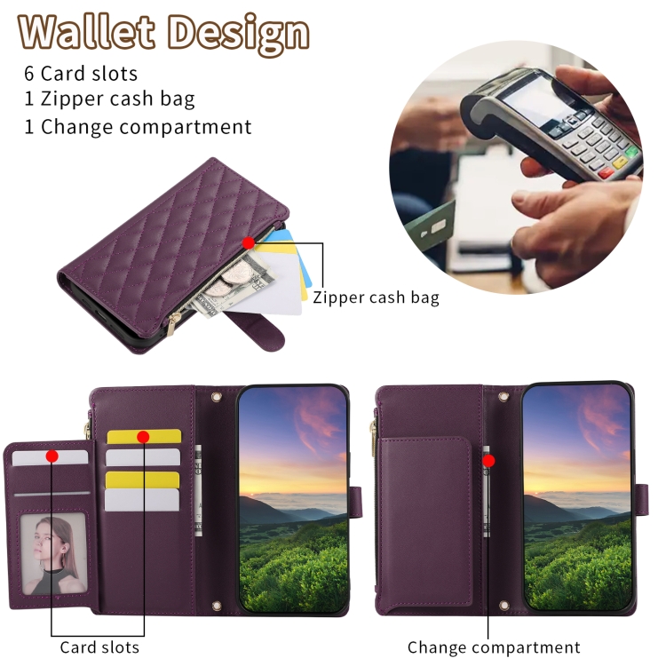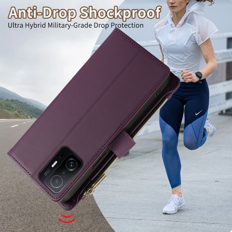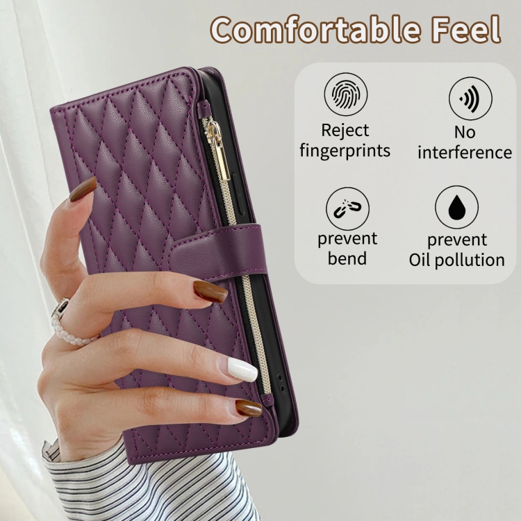 Funda de Cuero Tipo Billetera con Cremallera Rombal para Xiaomi Mi 11T (Morado Oscuro)