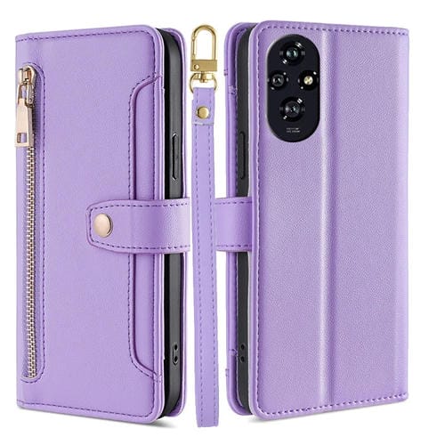 Funda Cuero Tipo Billetera Honor 200 5G con Cremallera Diseño Cruzado Textura Oveja (Morado)