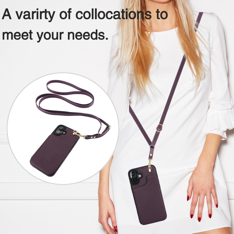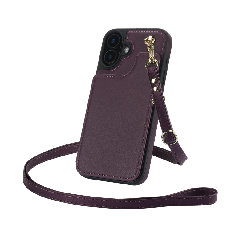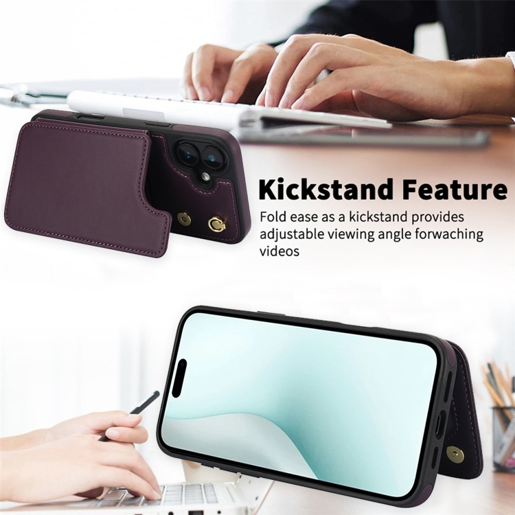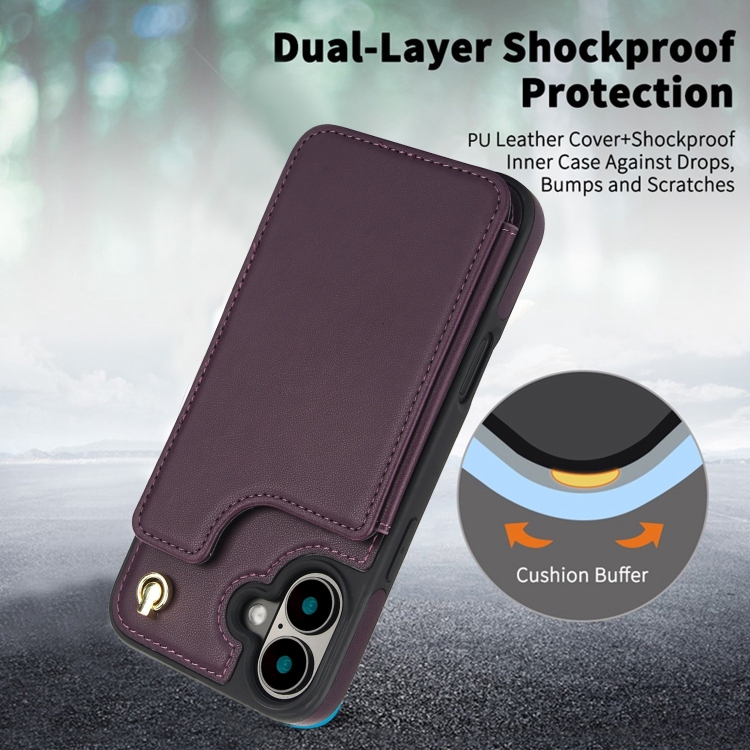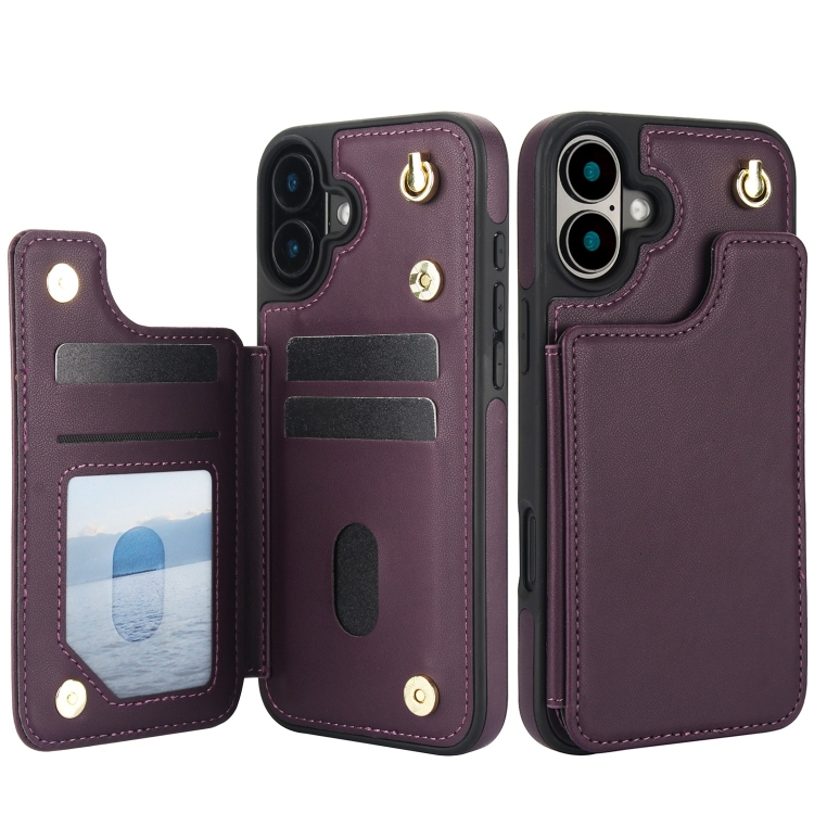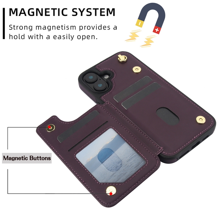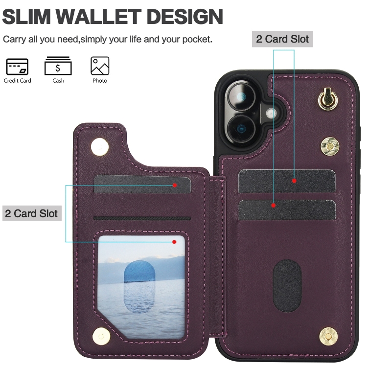 Funda Tipo Billetera Cuero Doble Hebilla Cruzada para iPhone 16 (Morado Oscuro)