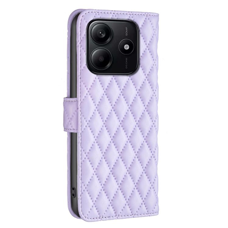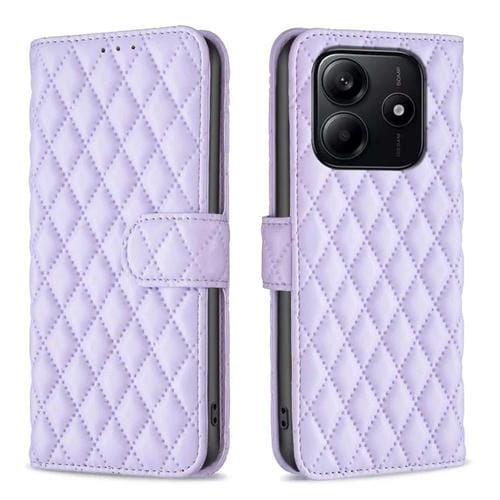 Funda de Cuero Tipo Billetera con Tapa y Diseño de Celosía de Diamantes para Redmi Note 14 4G (Morado)