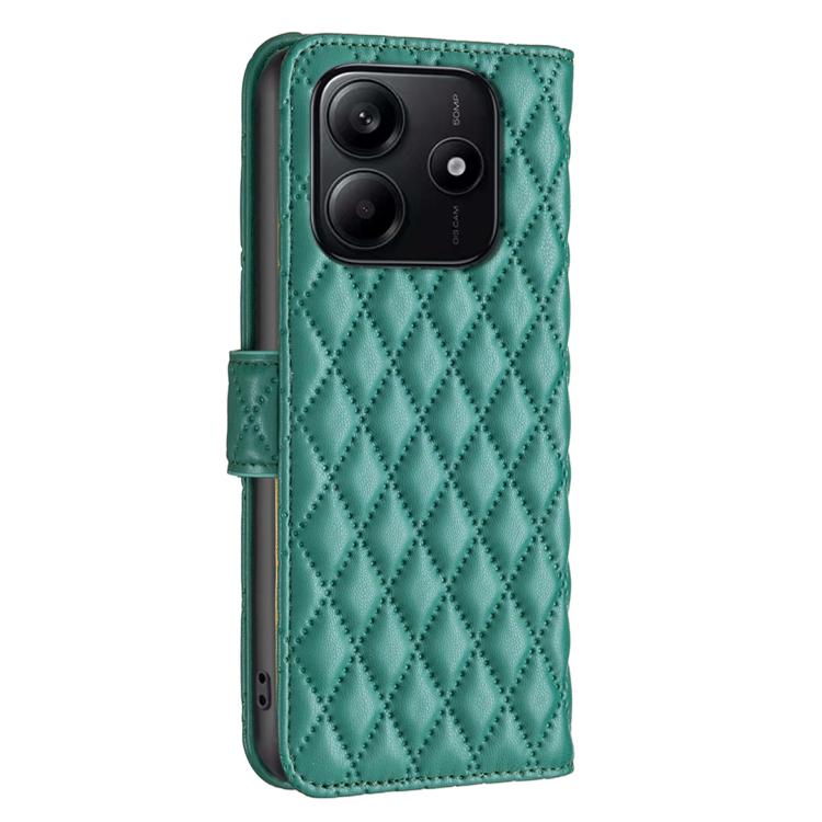 Funda de Cuero Tipo Billetera con Tapa y Diseño de Celosía En Forma de Diamante para Redmi Note 14 4G (Verde)