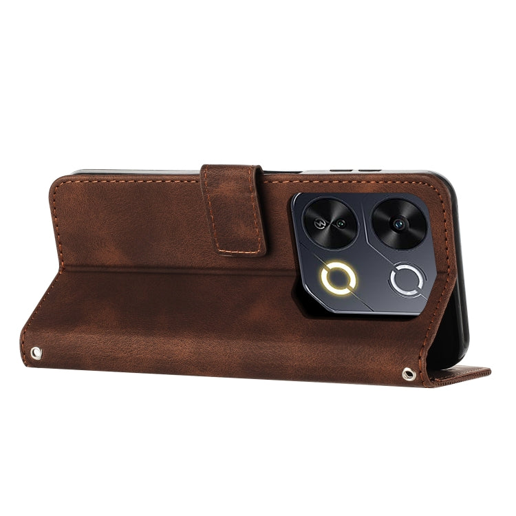 Funda de Cuero Triangular con Cordón Largo para Teléfono Itel P65 Dream (Marrón)
