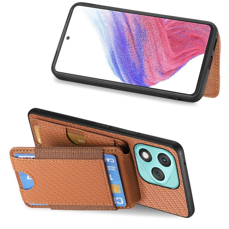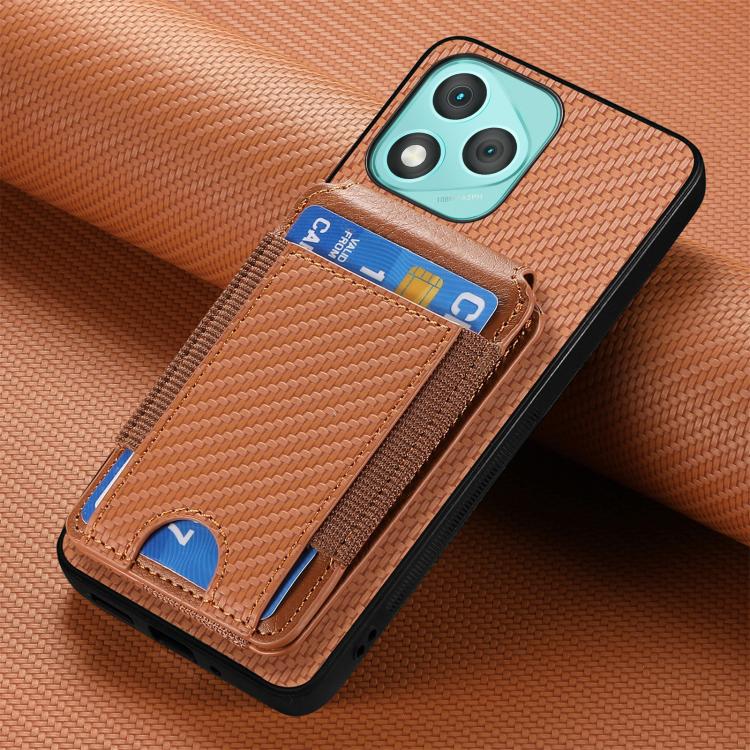 Funda de fibra de carbono con tapa vertical y función atril para Honor 400 Lite (marrón)